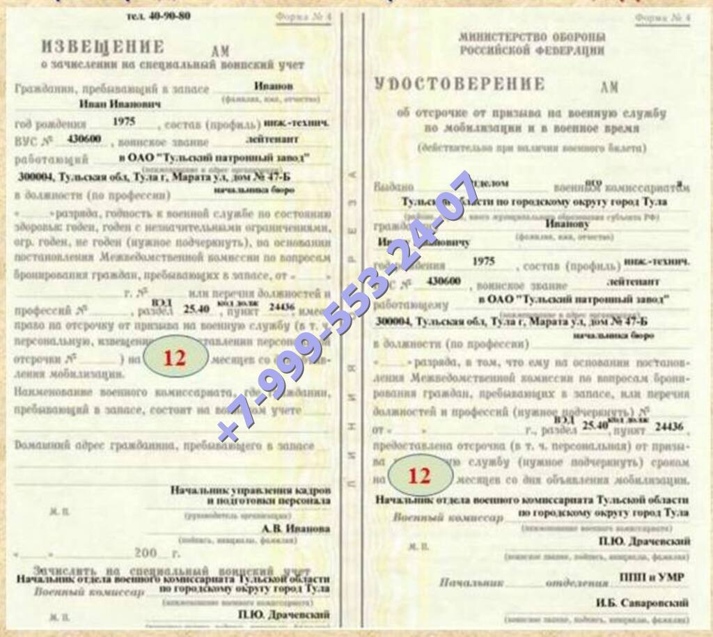 Наша компания предлагает купить в Благодарном удостоверение об отсрочке на военную службу на максимально выгодных условиях для клиента. Документы легальные, использованы бланки государственного образца.
